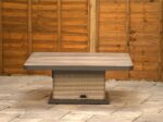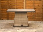 You’re getting 1 x corner rattan sofa, 1 x left sofa, 1 x right sofa, 2 x bench ottomans and 1 x height-adjustable table with a ceramic tile top. The full footprint is 300cm x 300cm, which is about the size of a standard new-build patio, so it gives you proper family seating without guesswork. The table adjusts from 49cm to 73cm with a foot pedal. The extra chunky back cushions keep it comfortable for longer, and the two bench ottomans can double up as extra chairs when everyone suddenly decides to sit down at once.