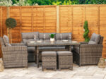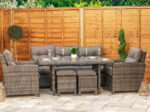 6 Seat Aluminium Rattan Sofa Dining Set in Dark Grey