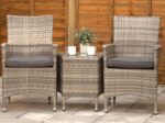 Grey Aluminium Rattan Bistro Set for 2 with Side Table