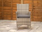 In the box, you get 2 x armchairs, 1 x side table and 2 x charcoal seat cushions. The overall footprint is W198cm x 60cm, with a 90cm height and a 53cm table height, so it sits neatly without taking over the space. The side table has a 5mm clear tempered glass top, which handles British temperature swings better than standard glass. All you need to do is store the cushions away when you’re not using them and wipe the frame/rattan with a cloth, or rinse with the hose if it needs it.
