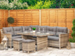 Grey Aluminium Rattan 6 Seater Corner Dining Set