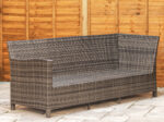 The frame is wrapped in grey synthetic rattan, and we only choose sets built to deal with real British weather. Unlike PVC rattan used on cheaper sets, proper UV-stabilised HDPE rattan doesn’t go brittle and crack after a couple of summers in UV exposure. If you’d rather buy once than replace every 2-3 seasons, this is exactly why we focus on aluminium-framed rattan furniture and check every set before it ships.
